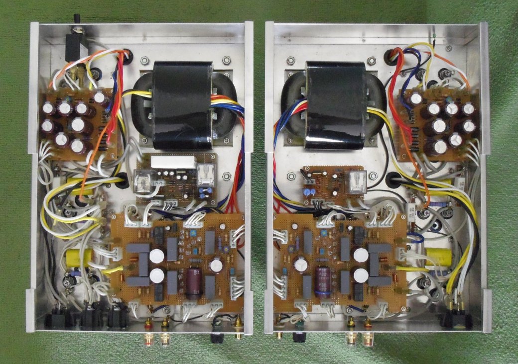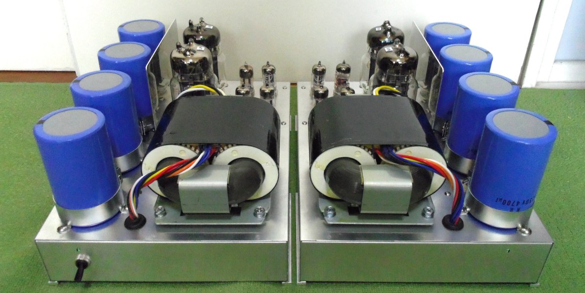 さて、トップの写真はLR各々40W/8Ω(歪率 数%)の真空管OTLアンプですが、中身はDCアンプです。
