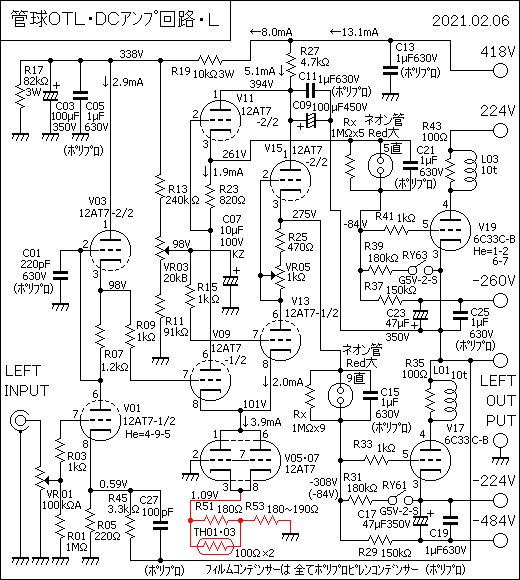 ☆.増幅回路内には一切の半導体を用いない真空管OTL・OCLのDCアンプを作る事です。