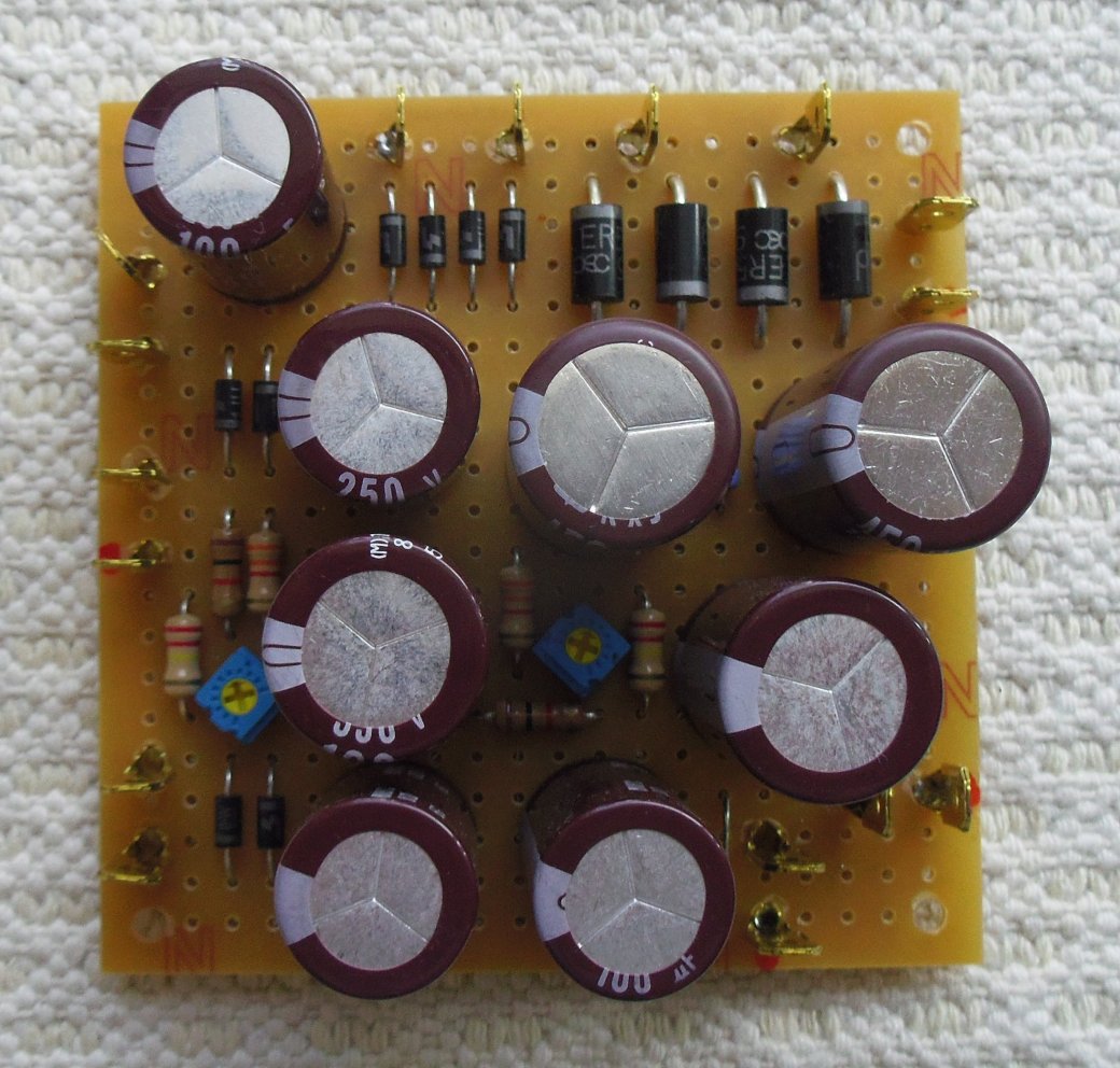 電源回路は出力管のバイアスが固定バイアスではなくなりますが、当初はネオン管にどの程度の励起電圧をかけなければならないかも分からない時に電源回路を設計しトランスを発注しましたので、必要以上に高い電圧を作り半固定VRで電圧を決めるようにしました。